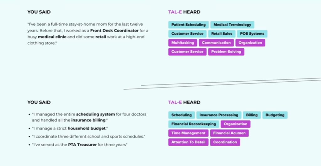 TAL-E stands for “Talents from Experiences.” At its core, it helps adult learners translate their lived experiences into skills, tell their story, and match those skills to new careers.